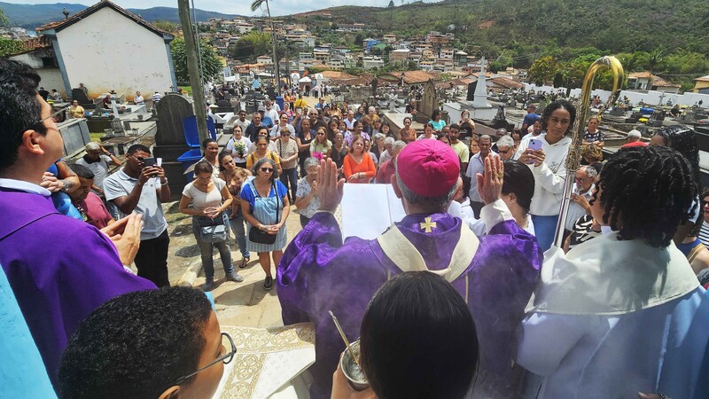 Em Mariana, o Arcebispo Metropolitano, Dom Airton José dos Santos, celebrou a Santa Missa, às 09h, no Cemitério Sant’Ana, onde aspergiu os túmulos com Água Benta e deu uma benção para todos os que estavam presentes, após a celebração.