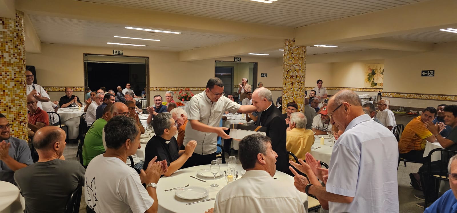 As atividades do primeiro dia foram concluídas com o jantar, favorecendo a convivência fraterna entre diáconos e presbíteros com seu Pastor. Assim se inicia uma semana de graça, reflexão e fecundo trabalho para a vida da Igreja Particular de Mariana.