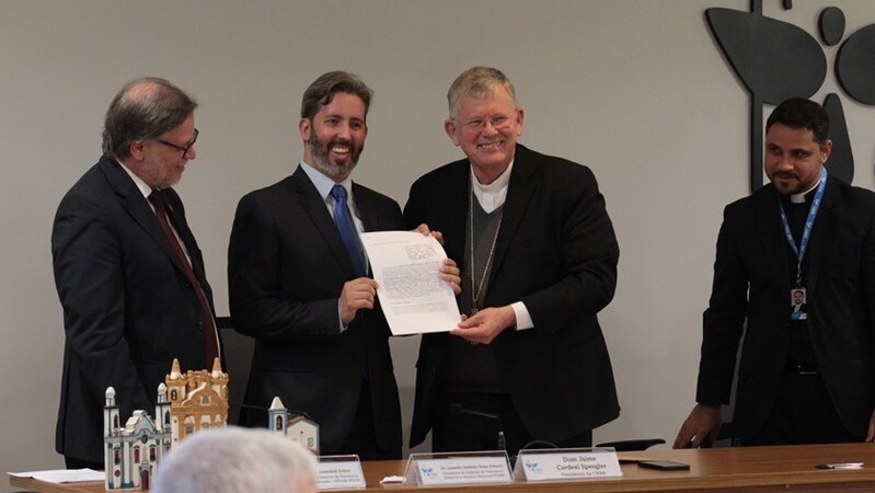 O arcebispo de Porto Alegre (RS) e presidente da Conferência Nacional dos Bispos do Brasil (CNBB), cardeal Jaime Spengler, assinou, no final da manhã desta quinta-feira, 3 de julho, o segundo acordo de cooperação técnica entre a Conferência Episcopal e o Instituto do Patrimônio Histórico e Artístico Nacional (Iphan). A cerimônia contou com integrantes do órgão ligado ao Ministério da Cultura, liderados pelo presidente, Leandro Grass, e com a participação dos bispos que compõem o Conselho Permanente da CNBB.