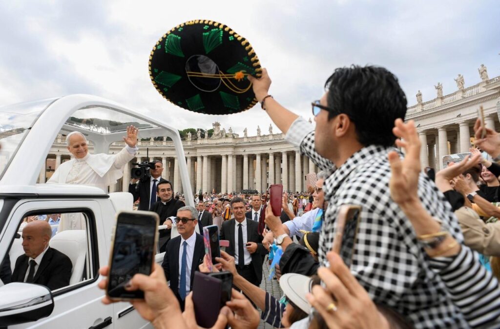 Aproximadamente 35 mil fiéis se reuniram na Praça São Pedro, que o Pontífice percorreu em seu papamóvel, parando para abençoar algumas crianças após saudar, em italiano e inglês, alguns fiéis e doentes reunidos na Sala Paulo VI: “Estou muito feliz de estar com vocês. Obrigado por estarem aqui”, disse ele. “Que o Senhor lhes dê muita paz em seus corações”, sublinhou. Outros grupos se encontravam no pátio Petriano, onde foi instalado um telão que transmitia as imagens da praça.