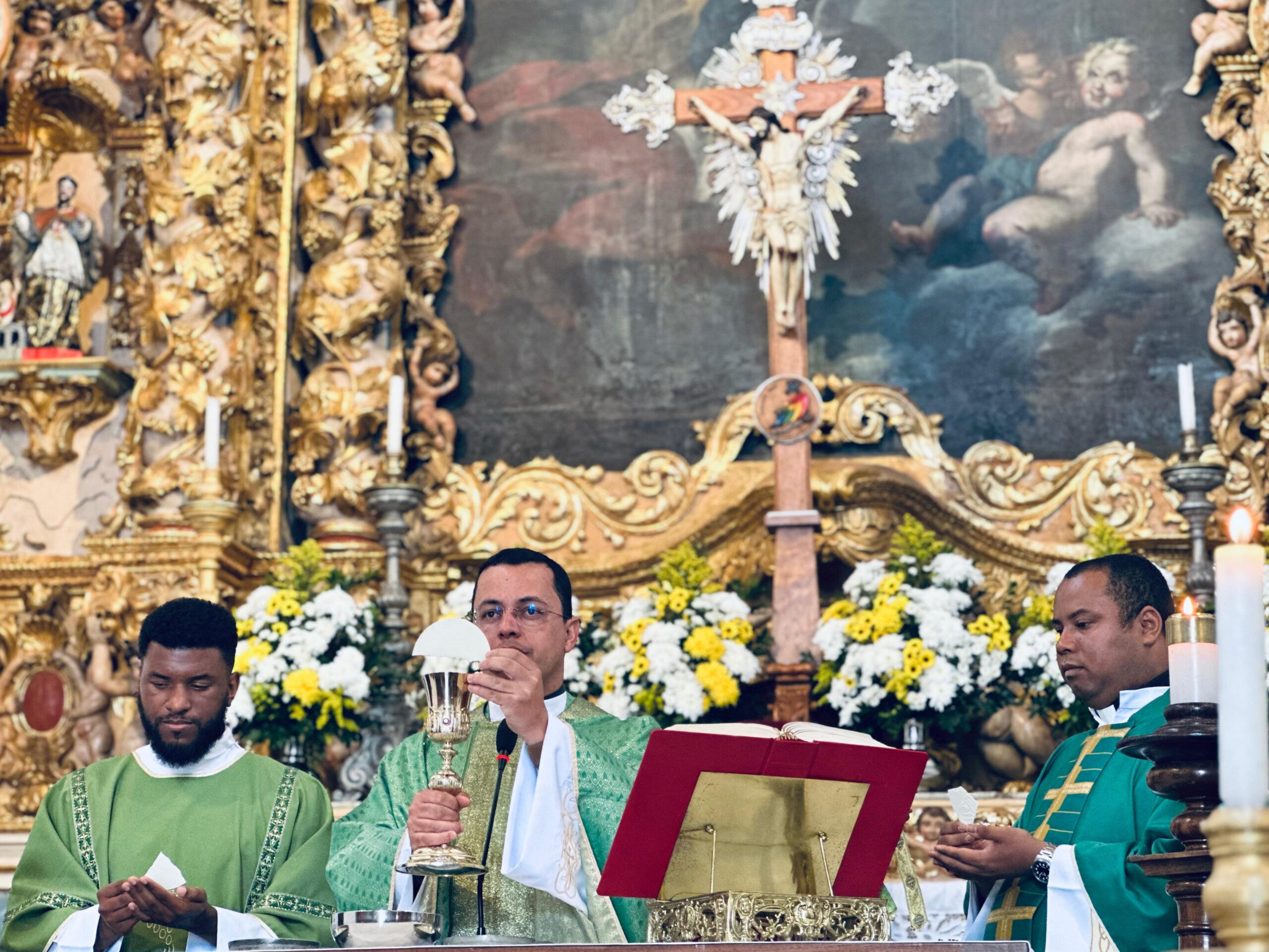 O pároco responsável, Padre Harley Carlos, conduziu a peregrinação, levando à frente a cruz do Jubileu, seguido dos fiéis que entoavam cânticos e orações. Na chegada à Catedral, ele presidiu a Santa Missa que foi concelebrada pelo Chanceler do Arcebispado, Padre Fabiano Alves, e pelo Diácono João Pedro.